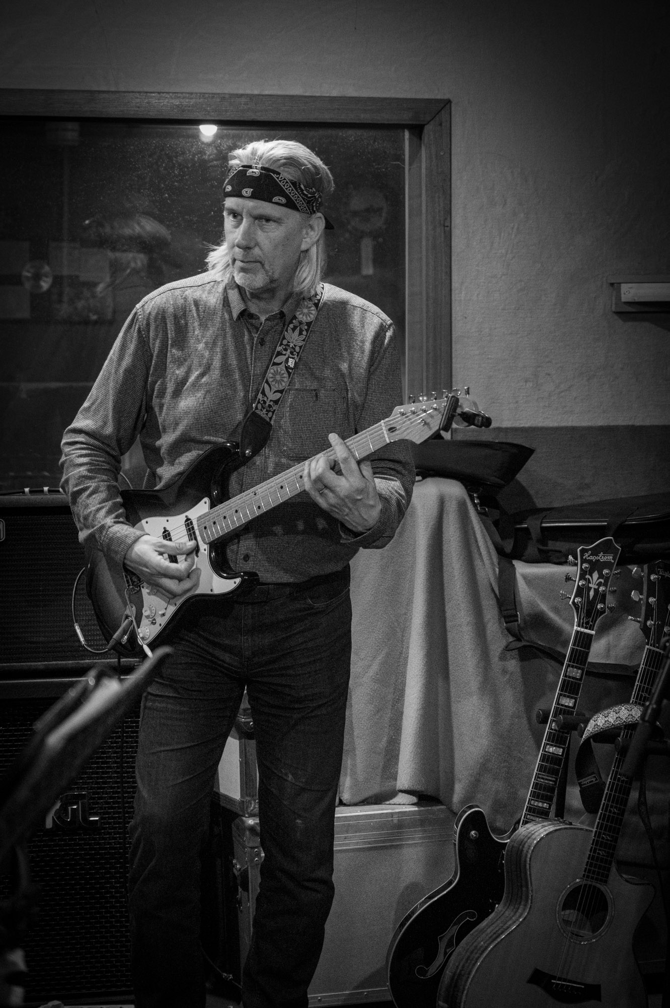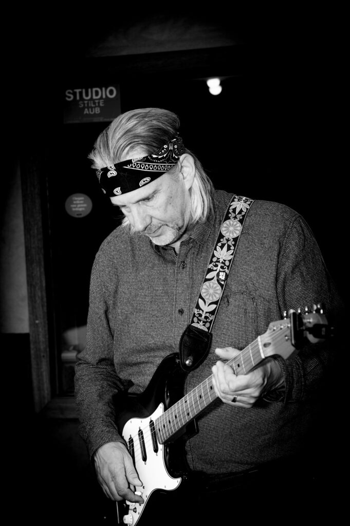 Tijdens zo’n oefening heb ik Hans geportretteerd. Hier heb ik een andere kant van hem gezien. Met een feilloos luisterend oor hoort hij elke onjuiste noot. Hij weet de andere bandleden zo te sturen dat ze de nummers op juiste manier spelen. Luisterend en docerend haalt hij het beste bij iedereen naar boven.
