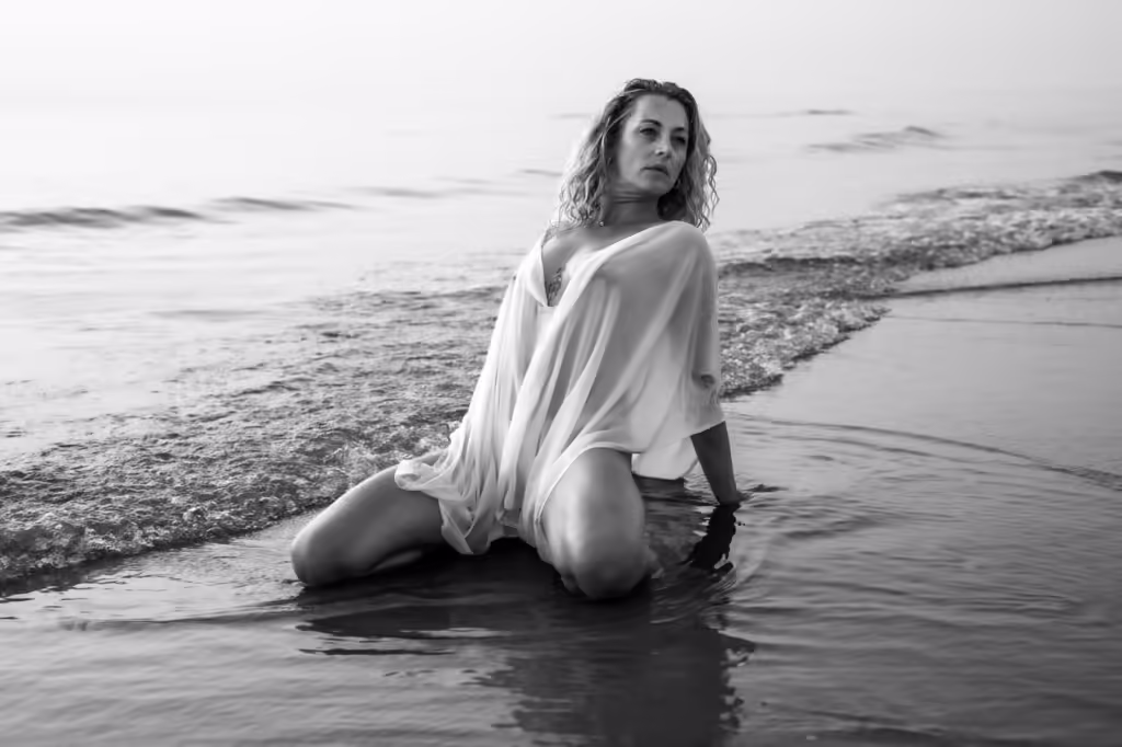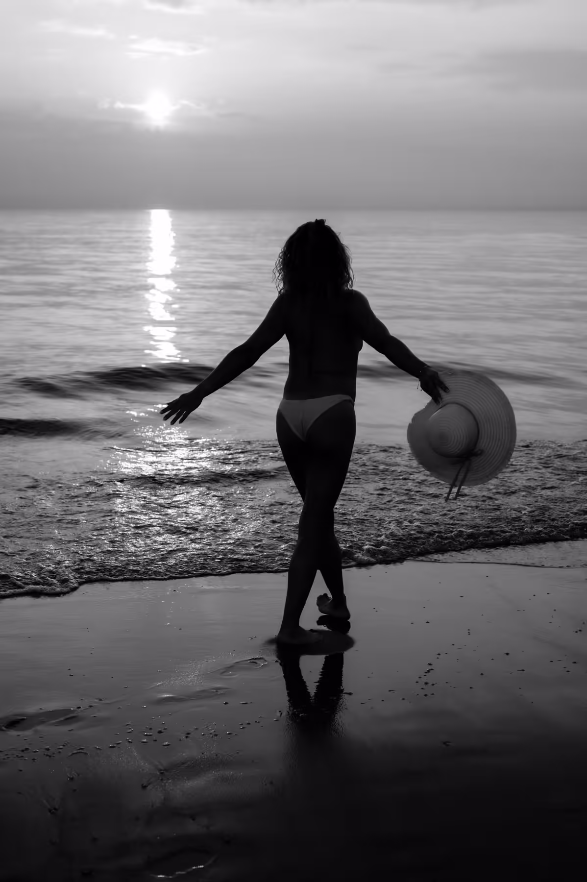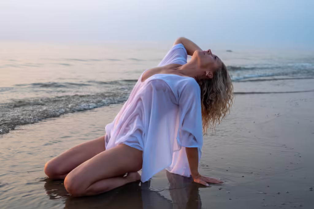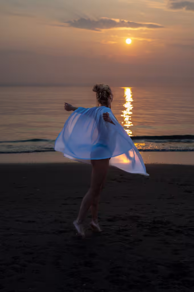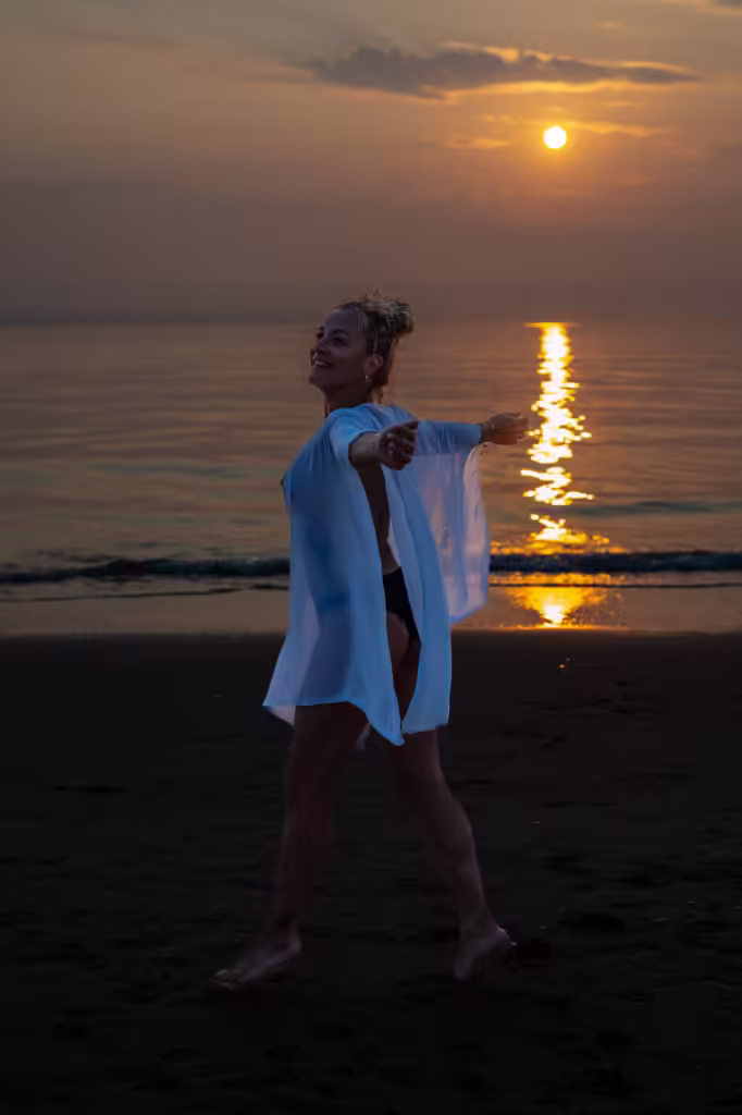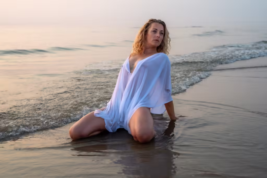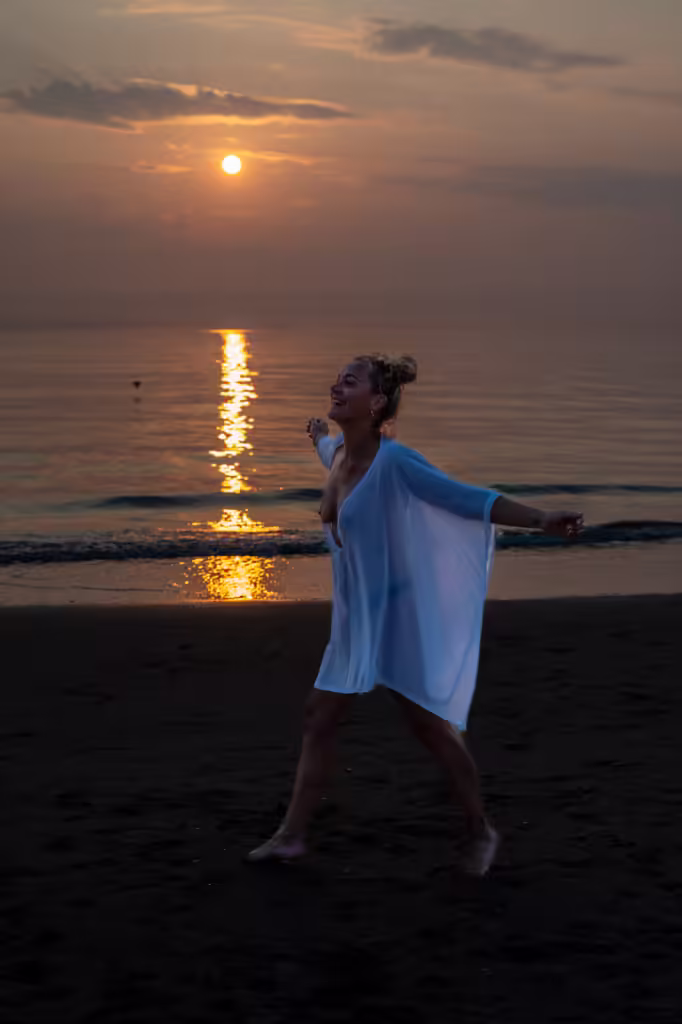 Het was een mooie zonnige dag, wat veel goeds beloofde voor de avondshoot. Echter, tegen de avond begon er vanuit zee lichte bewolking op te komen. Hoewel we de zon niet in de zee hebben zien zakken, waren we op tijd op het strand en konden we optimaal gebruik maken van het beschikbare licht. Ondanks de veranderende weersomstandigheden hebben we weer een prachtige serie foto’s kunnen maken. Het spontane karakter en de flexibiliteit van deze shoot hebben opnieuw bewezen dat improviseren soms tot de mooiste resultaten leidt.