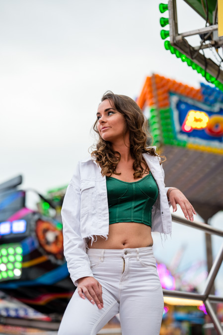 Het is begin van de avond en de kermis wordt al goed bezocht. Nikee is een beetje nerveus door alle eventuele kijkers die langs lopen. Maar de nervositeit is snel weg als ze de reacties van de kermisexploitanten en voorbijgaand publiek hoort. Het zelfs zo leuk dat de kermis exploitanten ons alle ruimte geven om de foto’s te maken. Veel lachende gezichten en positieve opmerkingen maken van de fotoshoot een top evenement.