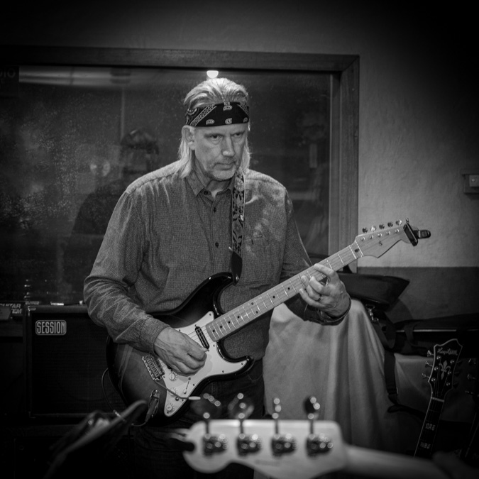Tijdens zo’n oefening heb ik Hans geportretteerd. Hier heb ik een andere kant van hem gezien. Met een feilloos luisterend oor hoort hij elke onjuiste noot. Hij weet de andere bandleden zo te sturen dat ze de nummers op juiste manier spelen. Luisterend en docerend haalt hij het beste bij iedereen naar boven.