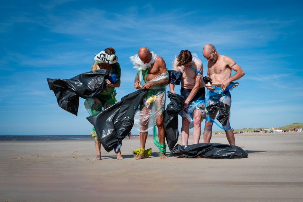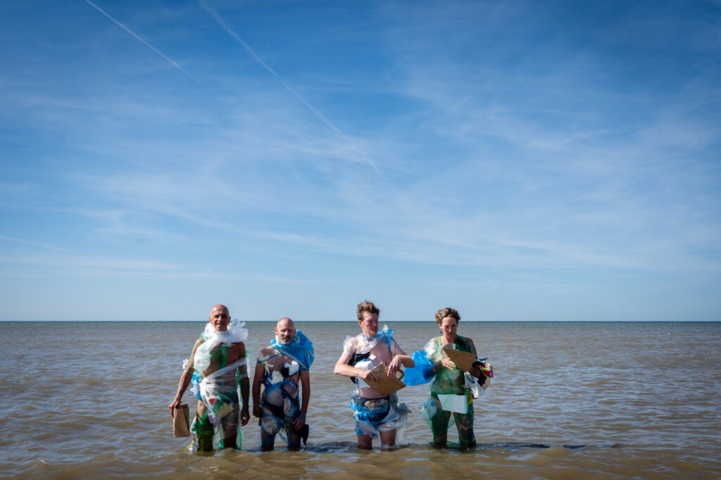 “Stel je voor: je loopt de zee in om te zwemmen en plezier te maken, maar je komt eruit omringd door plastic, zoals de mensen op onderstaande foto’s. Is dat de toekomst die jij wilt?”