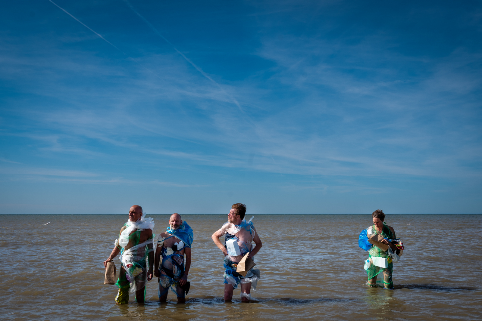 “Stel je voor: je loopt de zee in om te zwemmen en plezier te maken, maar je komt eruit omringd door plastic, zoals de mensen op onderstaande foto’s. Is dat de toekomst die jij wilt?”