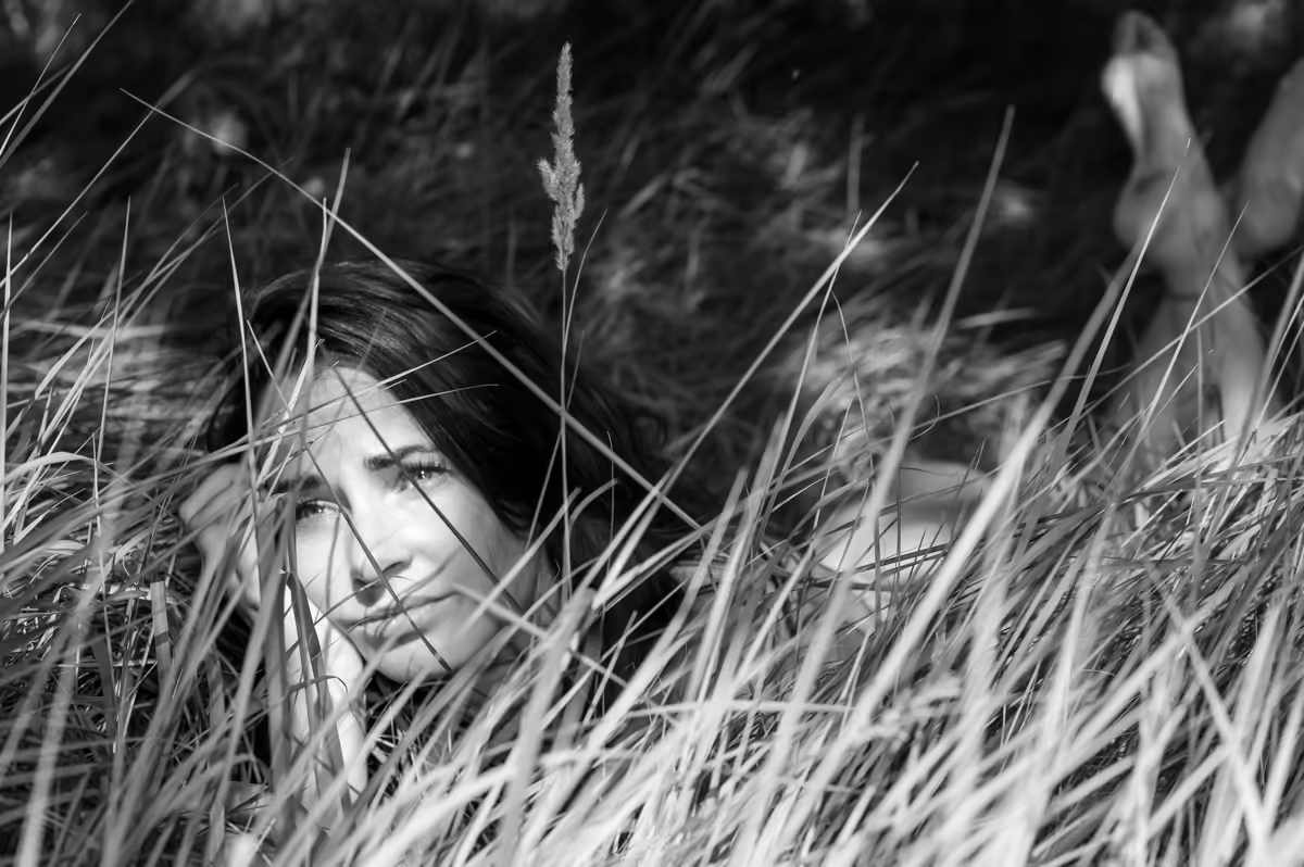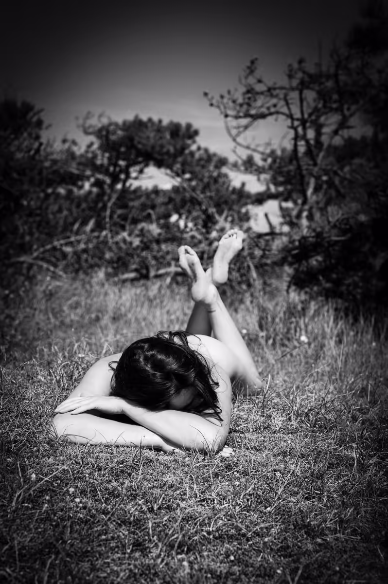 We begonnen met een rustige wandeling door de duinen, waar we de perfecte plek zochten om de sfeer van de fotoshoot te bepalen. De stilte en de natuurlijke omgeving boden de ruimte voor een intieme en persoonlijke sessie. Nikee liet zichzelf langzaam maar zeker toe om haar emoties te tonen voor de camera, wat een mooi en krachtig contrast creëerde tussen haar innerlijke pijn en de serene schoonheid van haar en de omgeving.