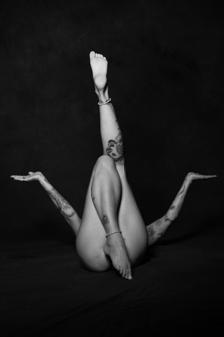 Het is altijd heel relaxed om met Coralie samen te werken. Ze is een ervaren model en weet hoe ze moet staan. Met haar vele tattoos valt ze zeker op. Ze is creatief en meedenkend met wat ik als fotograaf voor ogen heb en schuwt de uitdaging niet.