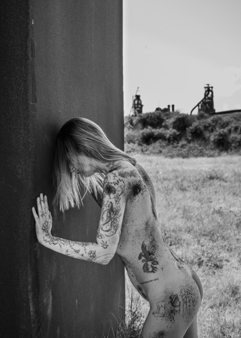 In dit beeldenpark heb ik laatst een fotoshoot gehouden met Coralie met als thema vervuiling. Geïnspireerd door de verkiezingsposter van de voormalige PSP uit 1971 waarop een blote vrouw staat afgebeeld in het landschap voor een koe. Het Landschap heb ik vervangen voor de beelden uit het beeldenpark en de koe is vervangen door de staalfabrieken. Tijdens de foto-opnamen beginnen we met mooie schone beelden, maar naar gelang de tijd verloopt worden de foto’s steeds vuiler. Een Zee van Staal wordt een Zee van Vervuiling.