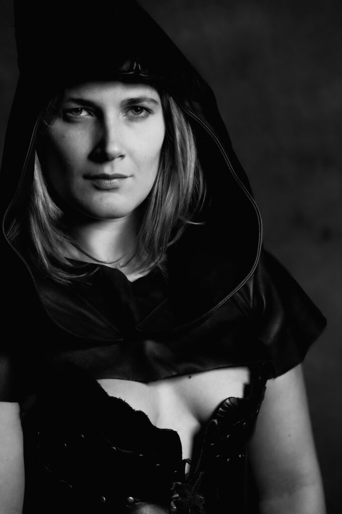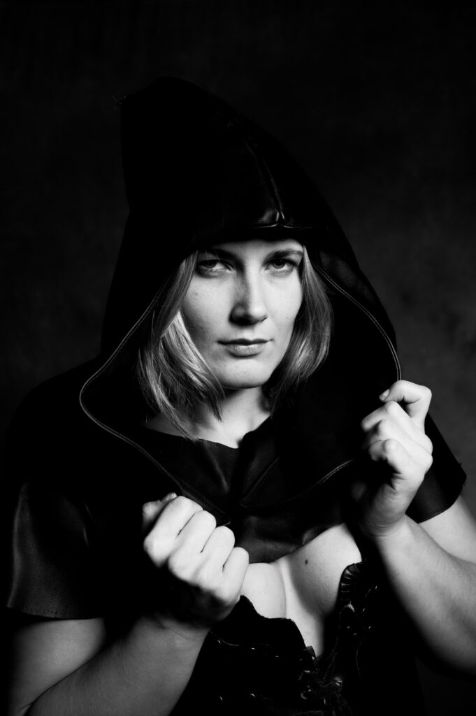 Het portret van Iris met de, door Iris zelf gemaakte leren hoodie en jakje/corset, was mijn eerste bijdrage. Het portret is omgezet naar een harde zwart/wit versie wat het thema “Kracht” nog meer tot uiting laat komen.